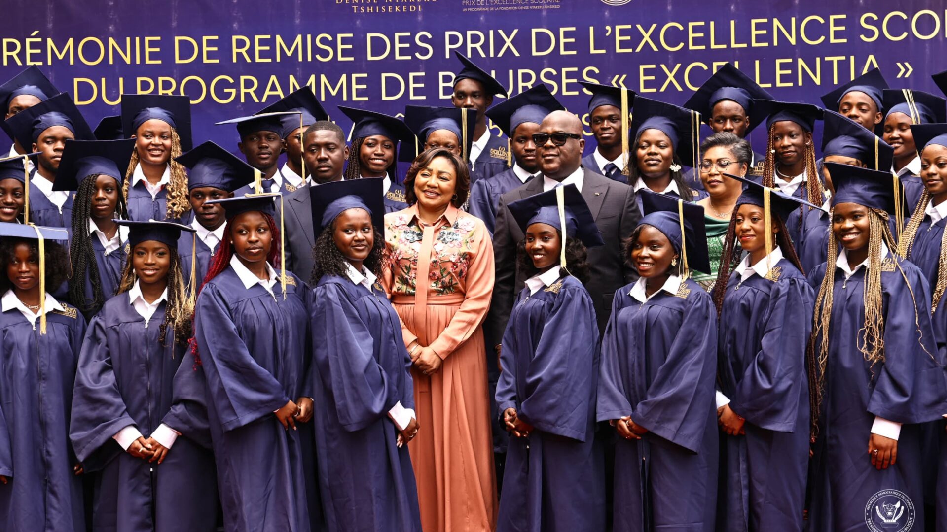Le Président Félix Tshisekedi et la distinguée Première dame Denise Nyakeru ont procédé, ce jeudi 14 août dans l'amphithéâtre du Centre culturel et artistique pour les pays d'Afrique centrale (CCPAC), à la remise de la bourse Excellentia 2024-2025 aux 79 lauréats de ce programme conçu et porté par la Fondation Lona (semer), autrefois « Fondation Denise Nyakeru Tshisekedi » du nom de sa marraine.