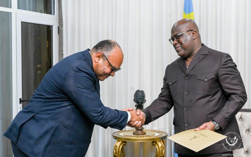 Le Président de la République Félix Antoine Tshisekedi Tshilombo a reçu, ce jeudi à la Cité de l’Union africaine, l’Ambassadeur extraordinaire et plénipotentiaire de la Russie en République Démocratique du Congo (RDC), Karl Tikhaze.