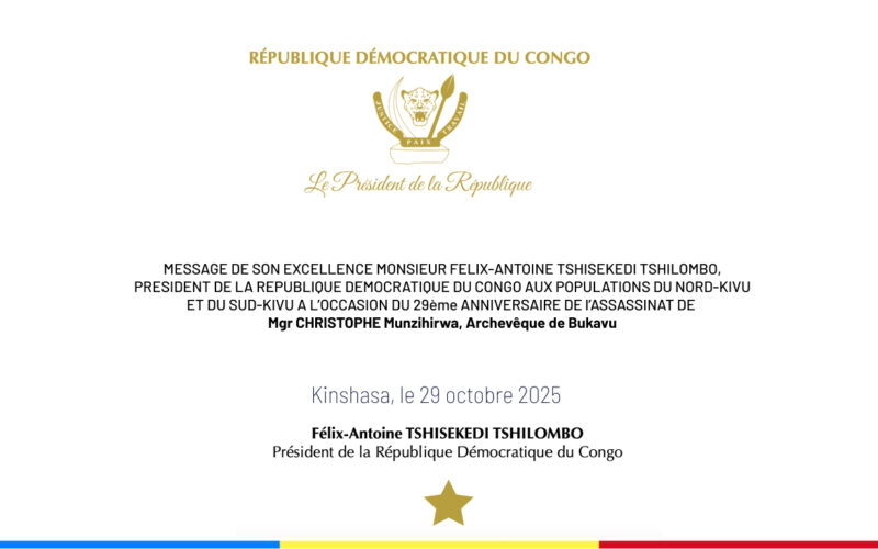 Le Chef de l’État a honoré la mémoire de son ancien Chef de la Maison civile, Mgr Gérard Mulamba