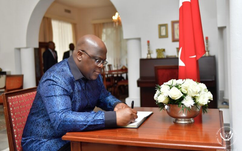 Le président de la république signe le registre de condoléances de l'ambassade de Türkiye en RDC.