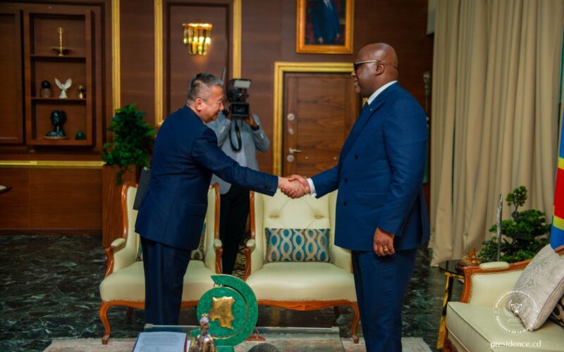 Ce mardi 18 novembre, dans ses bureaux de la Cité de l’Union africaine à Kinshasa, le Président de la République, Félix Antoine Tshisekedi Tshilombo, a accordé une audience à l’Envoyé spécial du Secrétaire général de l’Organisation des Nations Unies (ONU) pour la région des Grands Lacs, Huang Xia, sur les différents processus de paix en cours en République Démocratique du Congo (RDC).