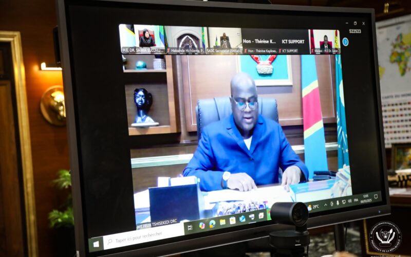 Ce mercredi dans ses bureaux de la Cité de l’Union africaine, à Kinshasa, le Président Félix Tshisekedi a pris part à un sommet virtuel EAC (Communauté d’Afrique de l’Est - SADC (Communauté de développement d’Afrique australe).