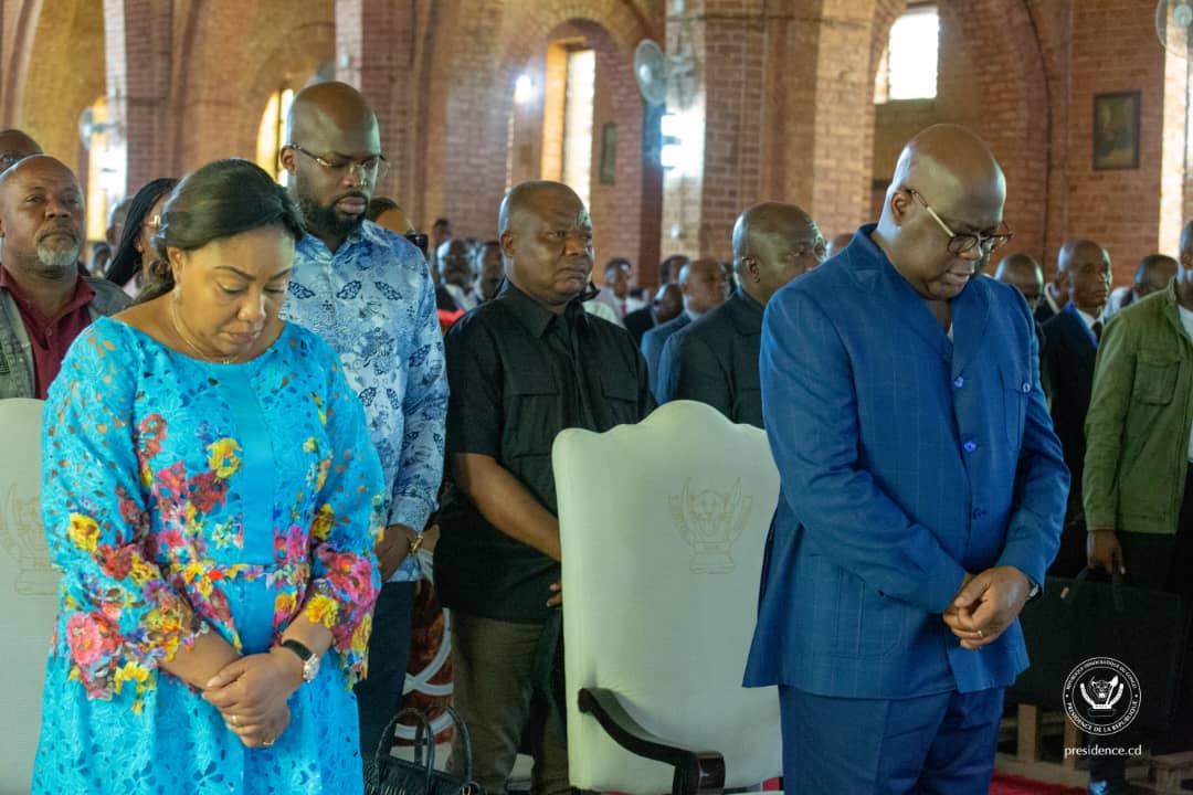 Au deuxième jour de son itinérance dans la province du Kasaï Central, le Président Félix Tshisekedi, accompagné de la Distinguée Première Dame, a participé à la messe de nativité officiée par l’archevêque métropolitain de Kananga Félicien Tambwe en la cathédrale St Clément.