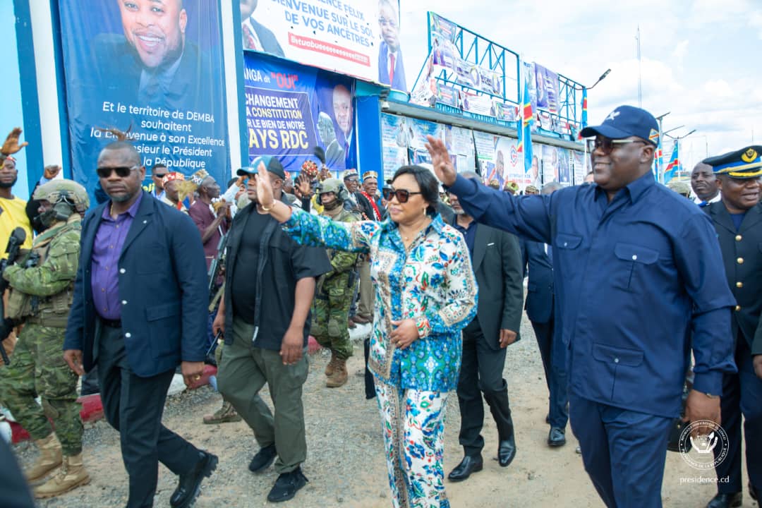 ont effectué une longue marche à pieds depuis l’aéroport jusqu’à la place de l’indépendance, au centre-ville de Kananga, où le premier des Congolais s’est adressé à la population venue en masse.