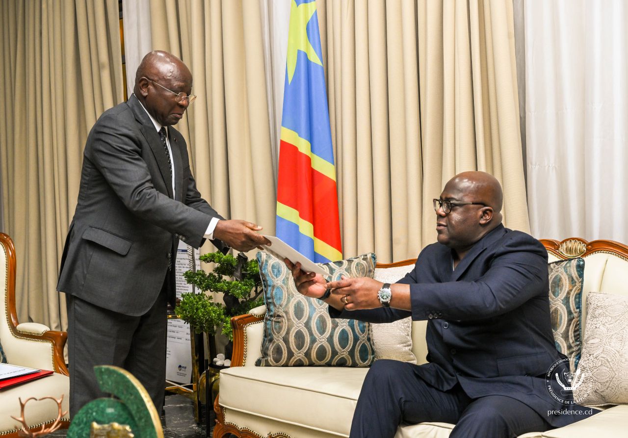 Ce jeudi soir à la Cité de l’Union africaine, le Président Félix Tshisekedi a accordé une audience au ministre de l’Intérieur et de la Décentralisation de la République du Congo, Raymond Zéphirin Mboulou, émissaire de son homologue Denis Sassou N'Guesso.