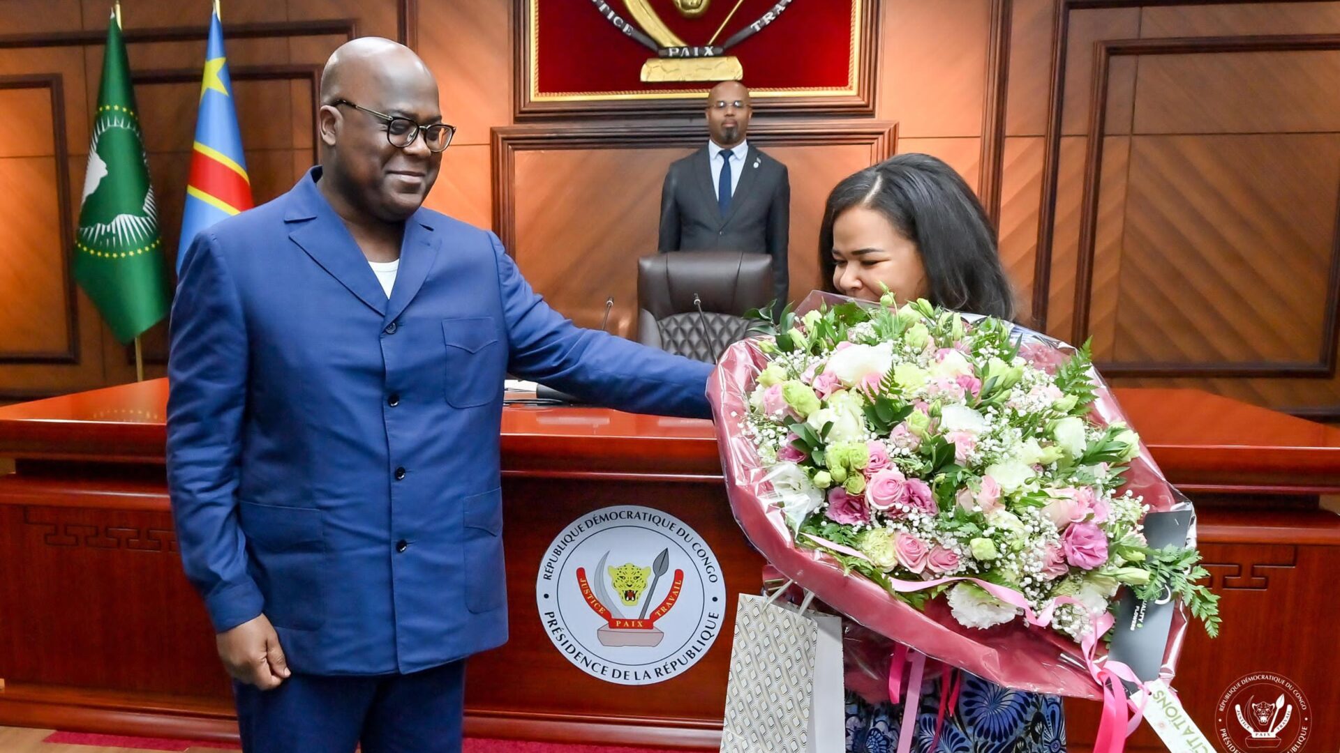 « Madame la ministre, au nom de la République et du peuple congolais, je vous félicite et vous remercie pour vos efforts. Je sais que le combat continue mais l’histoire retiendra que vous êtes une vraie héroïne, que vous avez accompli un grand travail dans cette guerre injuste qui nous est imposée », a poursuivi le PrésidentTshisekedi, s’adressant à Mme Kayikwamba.