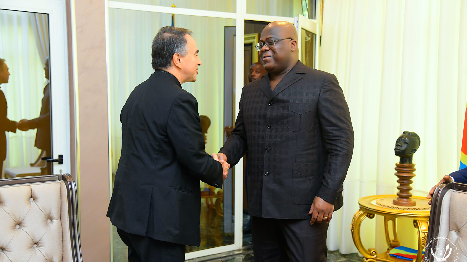 Le nonce apostolique, Mgr Ettore Balestrero qu'accompagnaient les délégués de la Conférence épiscopale nationale du Congo, Carlos Ndaka , Évêque auxiliaire de Kinshasa et Jean Pierre Kwambamba, Évêque de Kenge, a été reçu en audience en début d'après midi ce jeudi à la Cité de l'Union africaine par le Président de la République, Félix Antoine Tshisekedi Tshilombo.