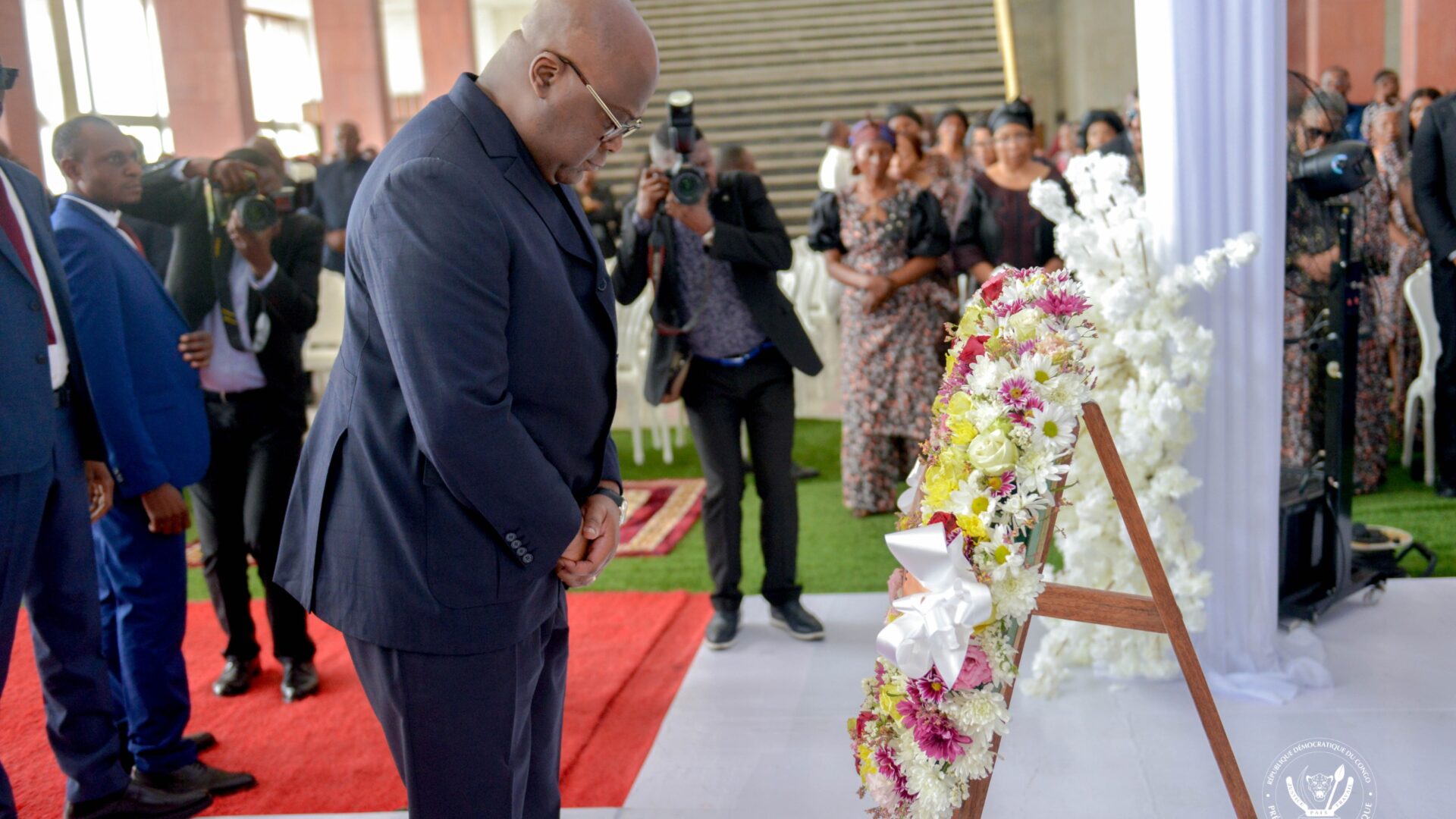 Ce lundi au Palais du peuple, à Kinshasa, le Chef de l’État Félix Tshisekedi a rendu un dernier hommage au patriarche Donatien Kabanga Kabadi, Député national honoraire,  décédé le 4 février 2025 à l'âge de 81 ans.  Le Président de la République s’est incliné devant la dépouille mortelle de l’honorable Kabanga Kabadi et y a déposé sa couronne de fleurs avant de réconforter la famille de l'illustre disparu.