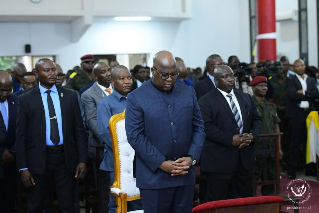 Ce lundi à l’Église Notre dame de Fatima, le Président Félix Tshisekedi a pris part à la messe de requiem organisée à l'occasion de la quatrième année de disparition de Monseigneur Gérard Mulumba, son tout premier Chef de la Maison civile.