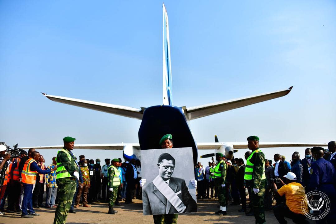 15h30, l'antonov 26 transportant la relique de Patrice Lumumba, 60 ans après son assassinat dans des conditions non élucidées atterrit à Tshumbe.