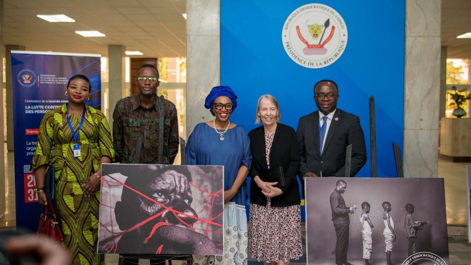 Ce mercredi 30 juillet 2025 au Palais de la Nation, Madame Chantal Yelu Mulop, Coordonnatrice du Service spécialisé du Chef de l’État en charge de la Jeunesse, Lutte contre les Violences faites à la Femme et la Traite des Personnes, a, au nom du Président de la République, présidé une séance de travail en marge de la célébration de la Journée internationale de la lutte contre la traite des êtres humains.