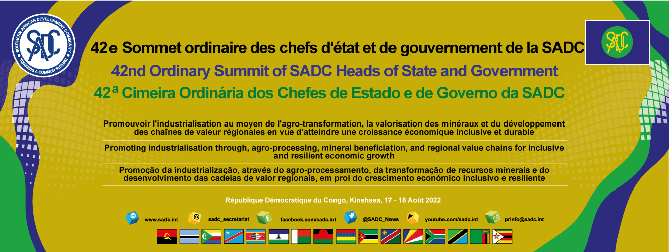 1025 – 1035hrs Acceptance Statement by SADC Chairperson, H.E. Mr. Félix Antoine Tshisekedi Tshilombo, President of the Democratic Republic of Congo and Host of the 42nd Ordinary SADC Summit