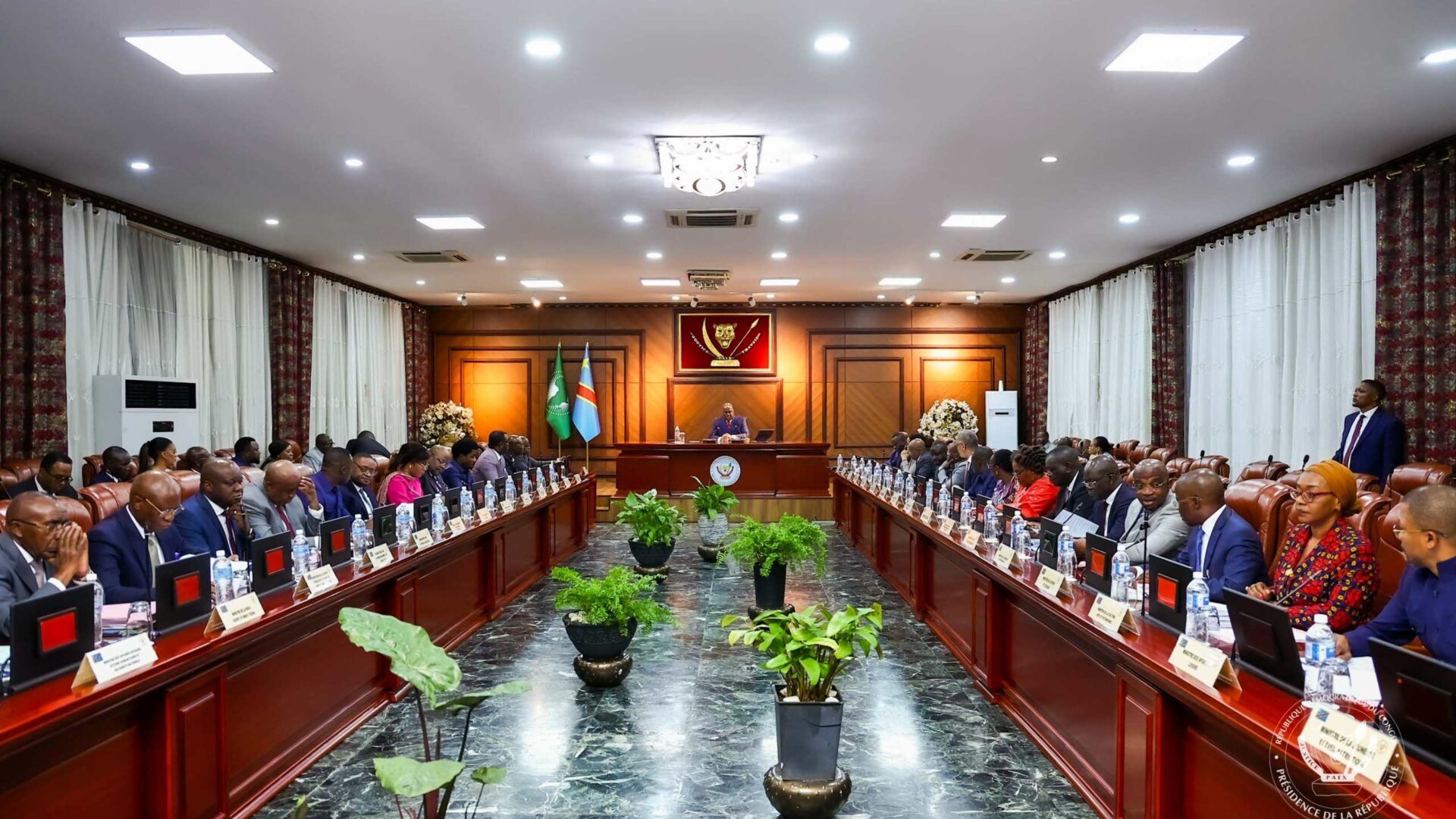 Le Chef de l’État Félix Tshisekedi préside, ce vendredi 11 avril 2025 à la Cité de l’Union africaine, la 39ème réunion ordinaire du Conseil des ministres du gouvernement Suminwa. Outre la communication du Président de la République, cette rencontre hebdomadaire du gouvernement va aborder la question relative à la situation sécuritaire, humanitaire et épidémiologique dans le pays.