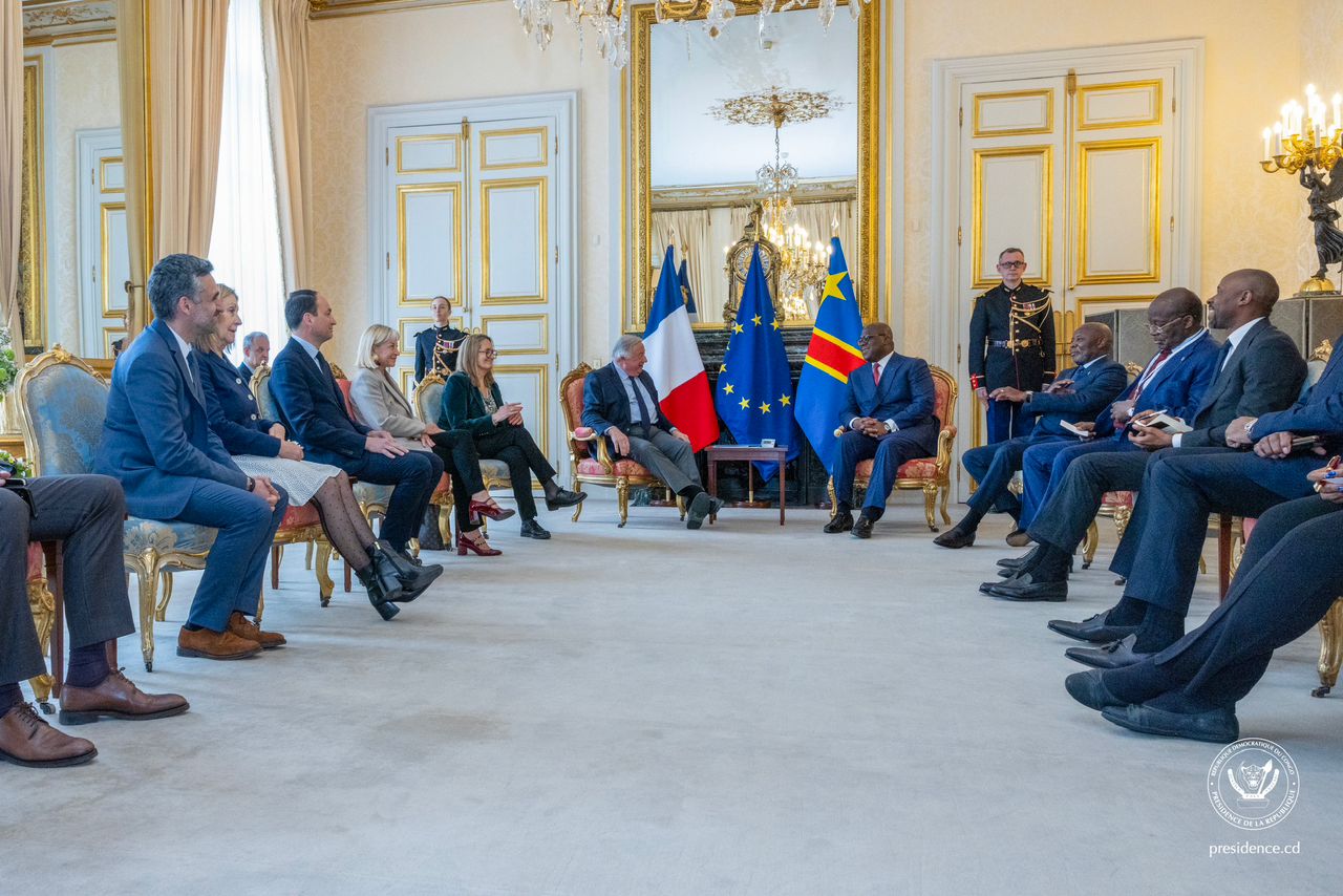 Entouré du Président du groupe d’amitié France-Afrique Centrale,  Guillaume Chevronnier, et Mme Sophie Primas, vice-Présidente du Sénat et Présidente déléguée pour la République Démocratique du Congo (RDC), le Président de la République a exploré plusieurs perspectives de coopération dans le cadre de la diplomatie parlementaire.