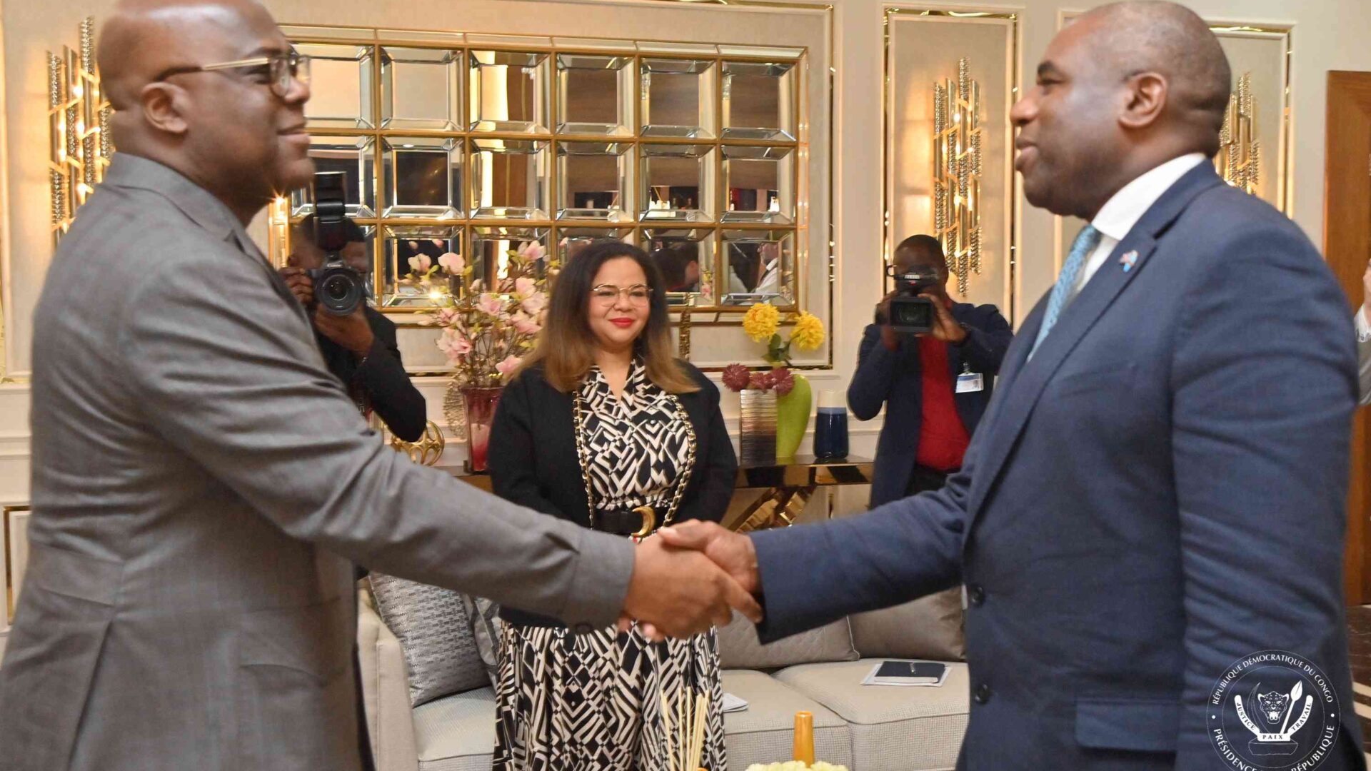 Le Président Félix Tshisekedi a reçu dans ses bureaux de la Cité de l’Union africaine David Lammy, Secrétaire d'État britannique aux Affaires étrangères, du Commonwealth et du Développement, venu lui exprimer tout le soutien diplomatique que son pays apporte à la République Démocratique du Congo (RDC) au moment où le Rwanda envahit les provinces du Nord-Kivu et du Sud-Kivu. Pendant près de deux heures, le Chef de l’État et son hôte ont passé en revue la situation sécuritaire et humanitaire dramatique dans l’Est de la RDC.